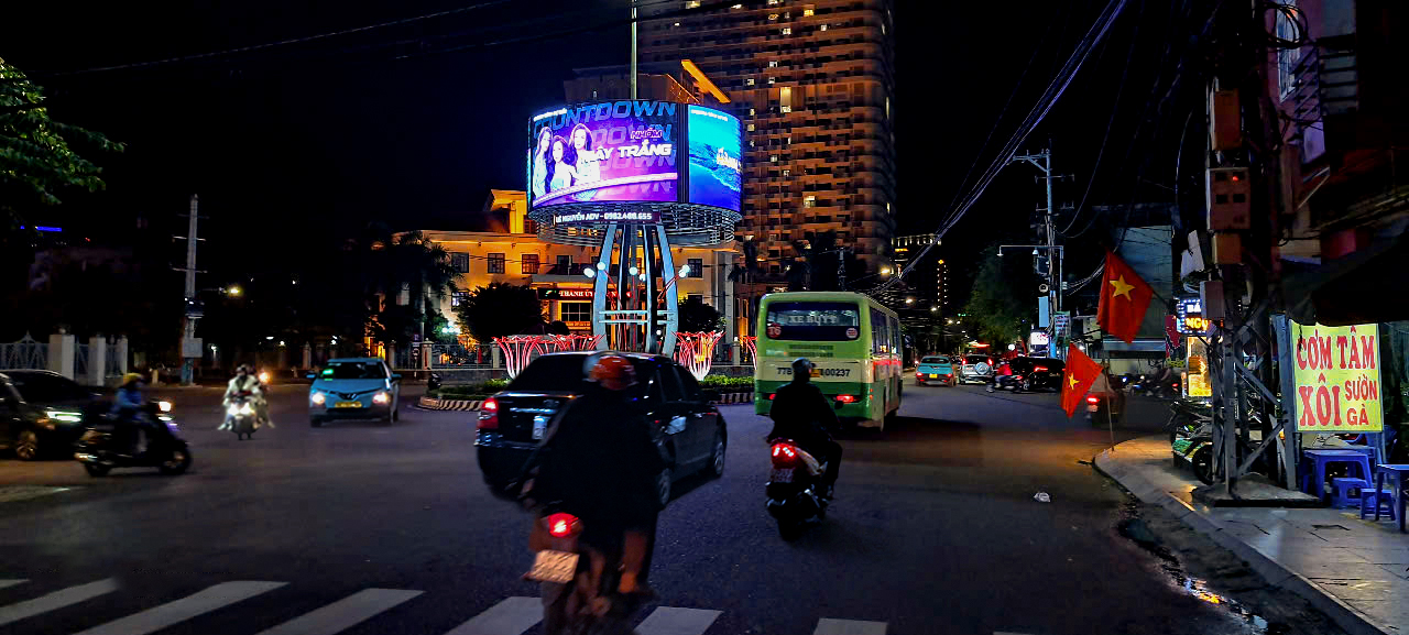 (Màn hình LED - Vòng Xoay Nguyễn Huệ - Lê Lợi - Trần Cao Vân , TP. Quy Nhơn - Tỉnh Bình Định)