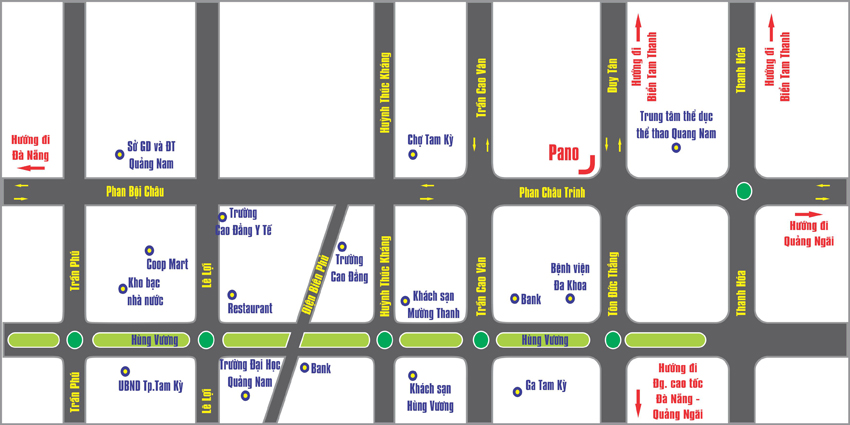 Pano nằm tại góc ngã tư Phan Châu Trinh – Duy Tân, giao nhau giữa các trục đường chính đi qua trung tâm thành phố. Nơi này tập trung nhiều khách sạn, nhà hàng, ngân hàng, chợ Tam Kỳ, trường tiểu học, quần thể dân cư sống đông đúc tập trung khu vực này và nơi đây còn được xem là con phố kinh doanh sầm uất nhất của P. Tam Kỳ.