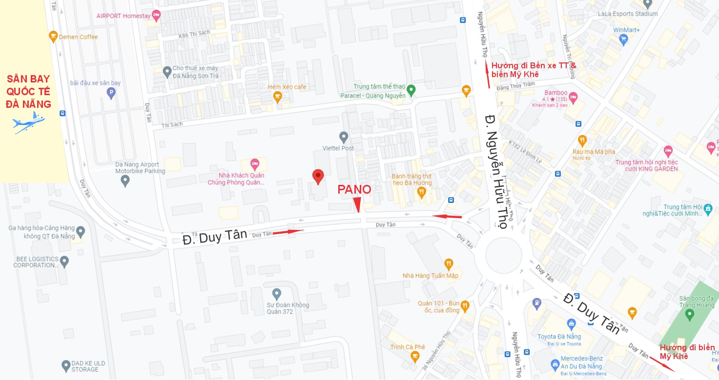 Pano đặt tại cửa ngõ Sân bay Quốc tế Đà Nẵng trên tuyến đường huyết mạch Duy Tân và Nguyễn Hữu Thọ, vị trí rất bắt mắt, thoáng rộng, tầm nhìn cưỡng bức, đón lượng khách trong nước và quốc tế đến 2 hướng đến và đi từ các khu du lịch biển, hầm chui Duy Tân, trung tâm hành chính,… . Pano gần các trung tâm mua sắm lớn, khách sạn, nhà hàng, ngân hàng, siêu thị… Nên tập trung lưu lượng giao thông rất đông đúc và nhộn nhịp, sản phẩm quảng cáo tại đây dễ được nhiều người khắp nơi nhận thấy và biết đến…