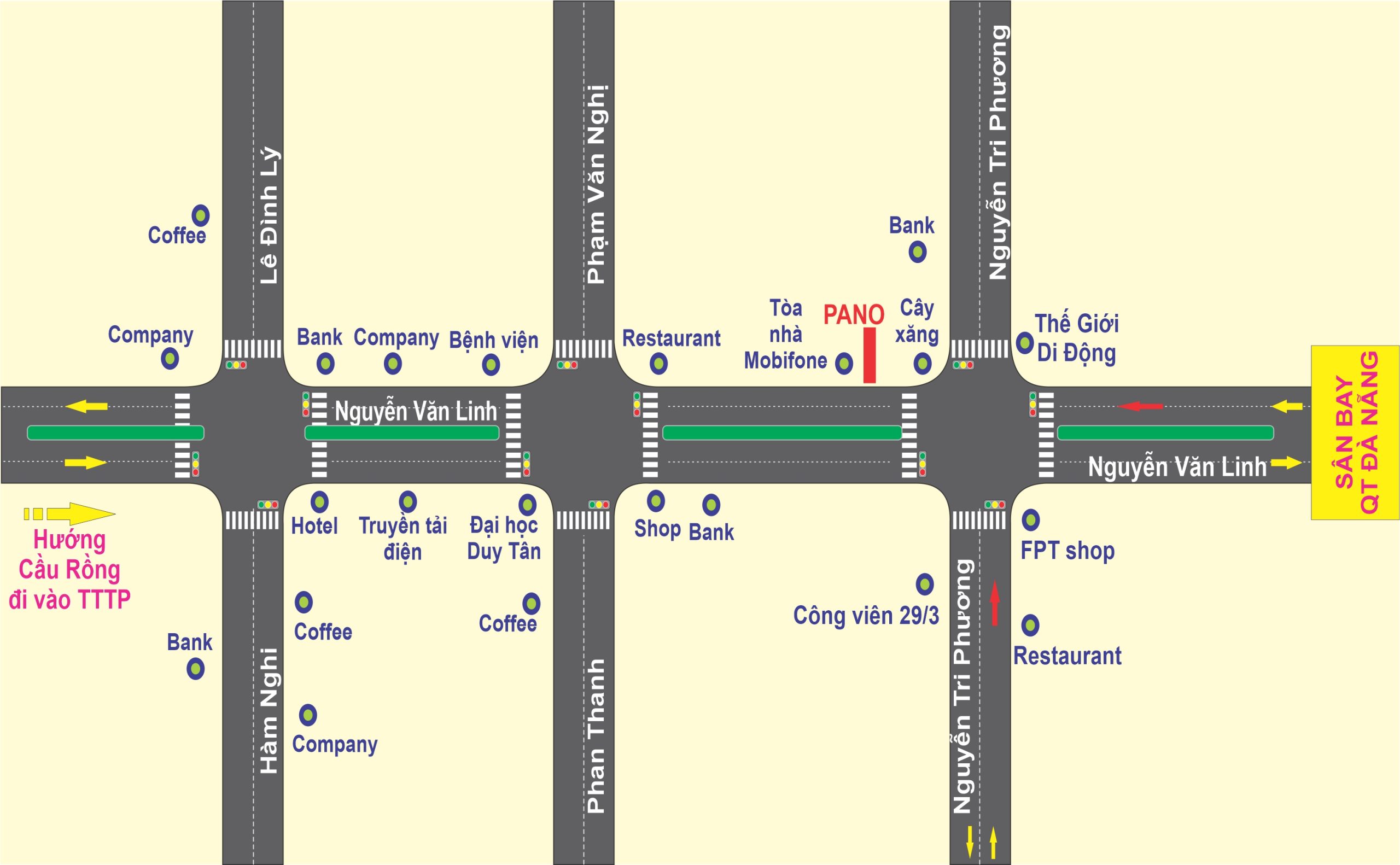 Đà Nẵng là một thành phố trực thuộc trung ương, là thành phố quan trọng nhất miền Trung. TP. Đà Nẵng nằm trên trục giao thông Bắc – Nam về đường bộ, đường sắt, đường biển và đường hàng không, là một trong những cửa ngõ quan trọng ra biển. Màn hình Led nằm ngay ngã tư Nguyễn Văn Linh – Nguyễn Tri Phương, trước cửa ngõ ra vào sân bay quốc tế Đà Nẵng là con đường trọng điểm của thành phố Đà Nẵng.