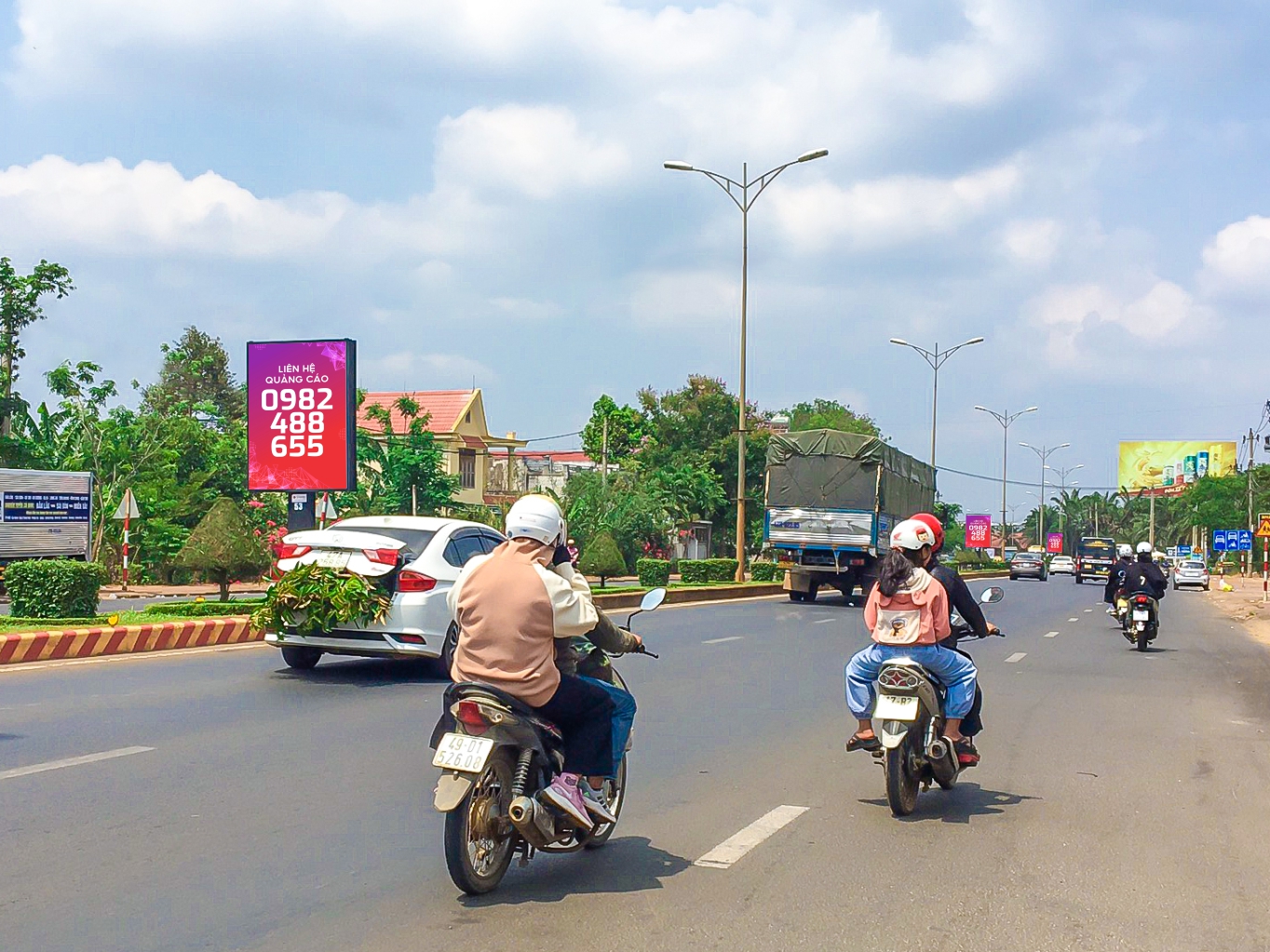 Hộp đèn 2 mặt nằm giữa dải phân cách đường trung tâm phường Tân An, gần các sở ban ngành, nhà hàng, khách sạn, bến xe, khu du lịch sinh thái. Do nằm giữa tuyến đường 2 chiều nên tầm nhìn rất thoáng đẹp, đập thẳng vào mắt người đi đường. Hiệu quả quảng cáo thương hiệu rất cao.