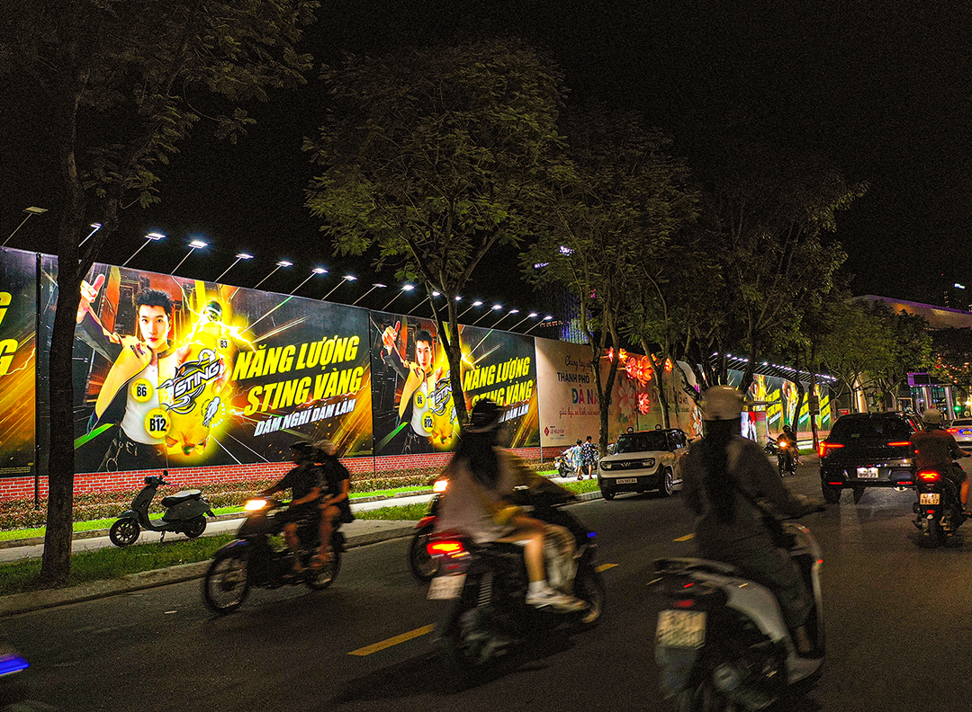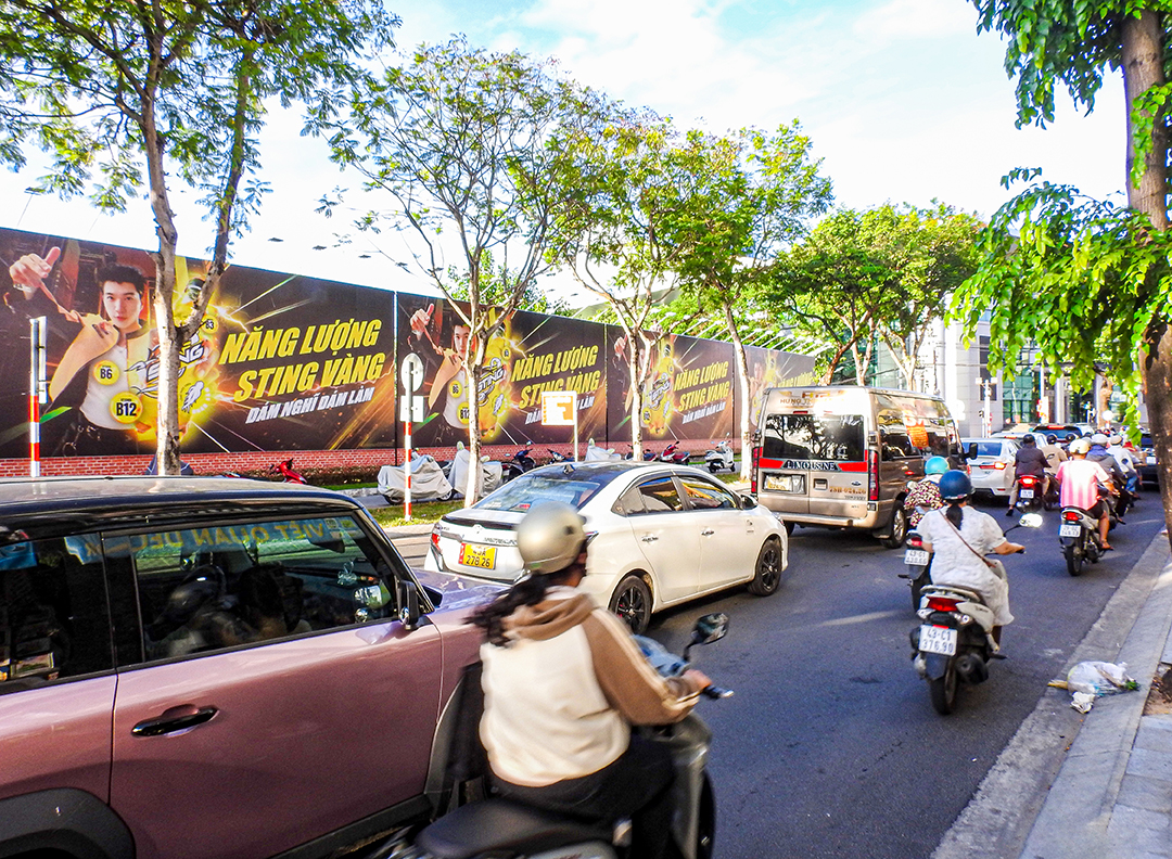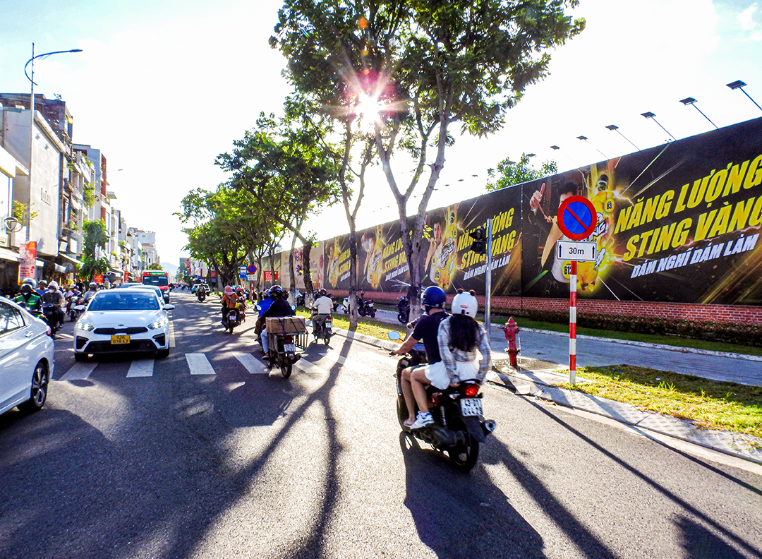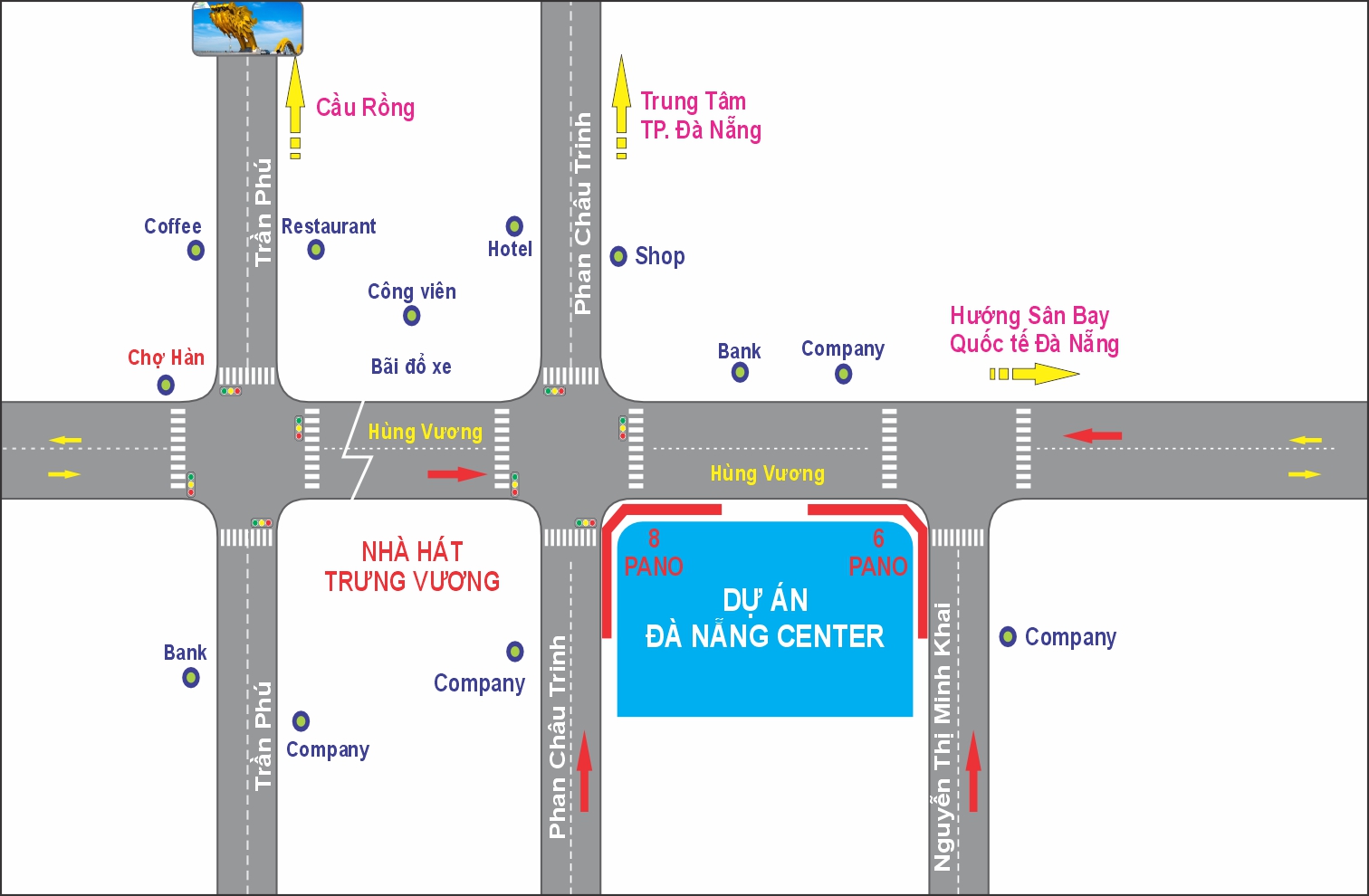 Pano áp tường rào dự án Đà Nẵng Center 3 mặt tiền đường Hùng Vương – Phan Châu Trinh – Nguyễn Thị Minh Khai, là một trong những con đường trọng điểm của thành phố. Mặt pano đón thẳng hướng nhìn của khách từ đường Bạch Đằng, cầu Rồng về chợ Cồn, siêu thị Go, kết hợp với không gian phía trước pano thoáng rộng, tầm nhìn cận cảnh, đối diện là nhà hát Trưng Vương, nơi diễn ra các sự kiện lớn của TP, nên luôn đông đúc người qua lại, tạo hiệu quả quảng cáo rất cao.